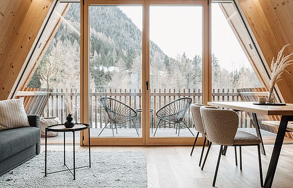 Drei Tichas – Tiny Houses in Dreiecksform – für vier bis sechs Personen: Lichtdurchflutet, minimalistisch und absolut außergewöhnlich. Mit voll ausgestatteter Küche und Blick aus dem Bett in den Sternenhimmel. Unsere Tichas wurden mit dem German Design Award 2025 ausgezeichnet. Hier erfahrt ihr mehr zur Architektur der Tichas.